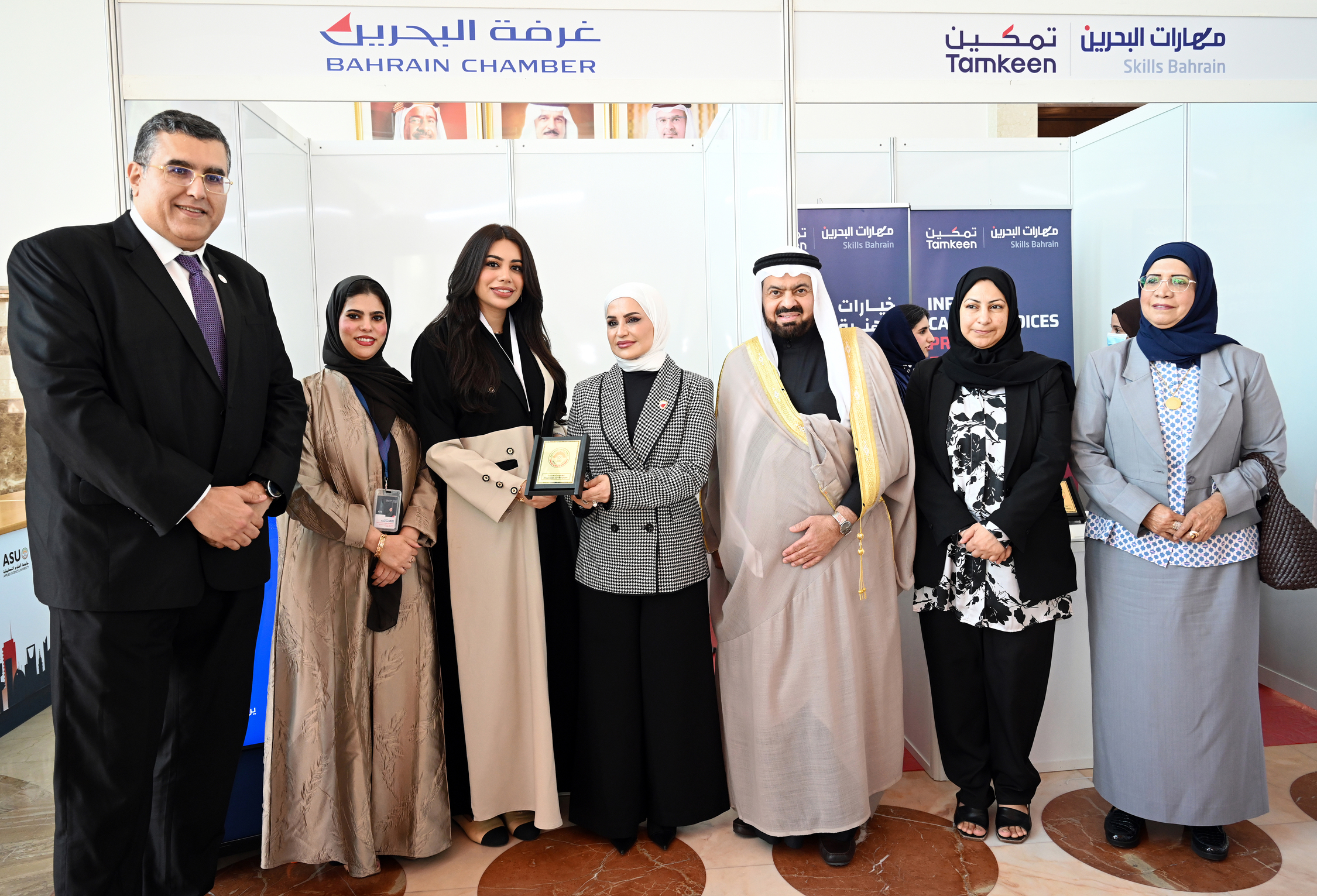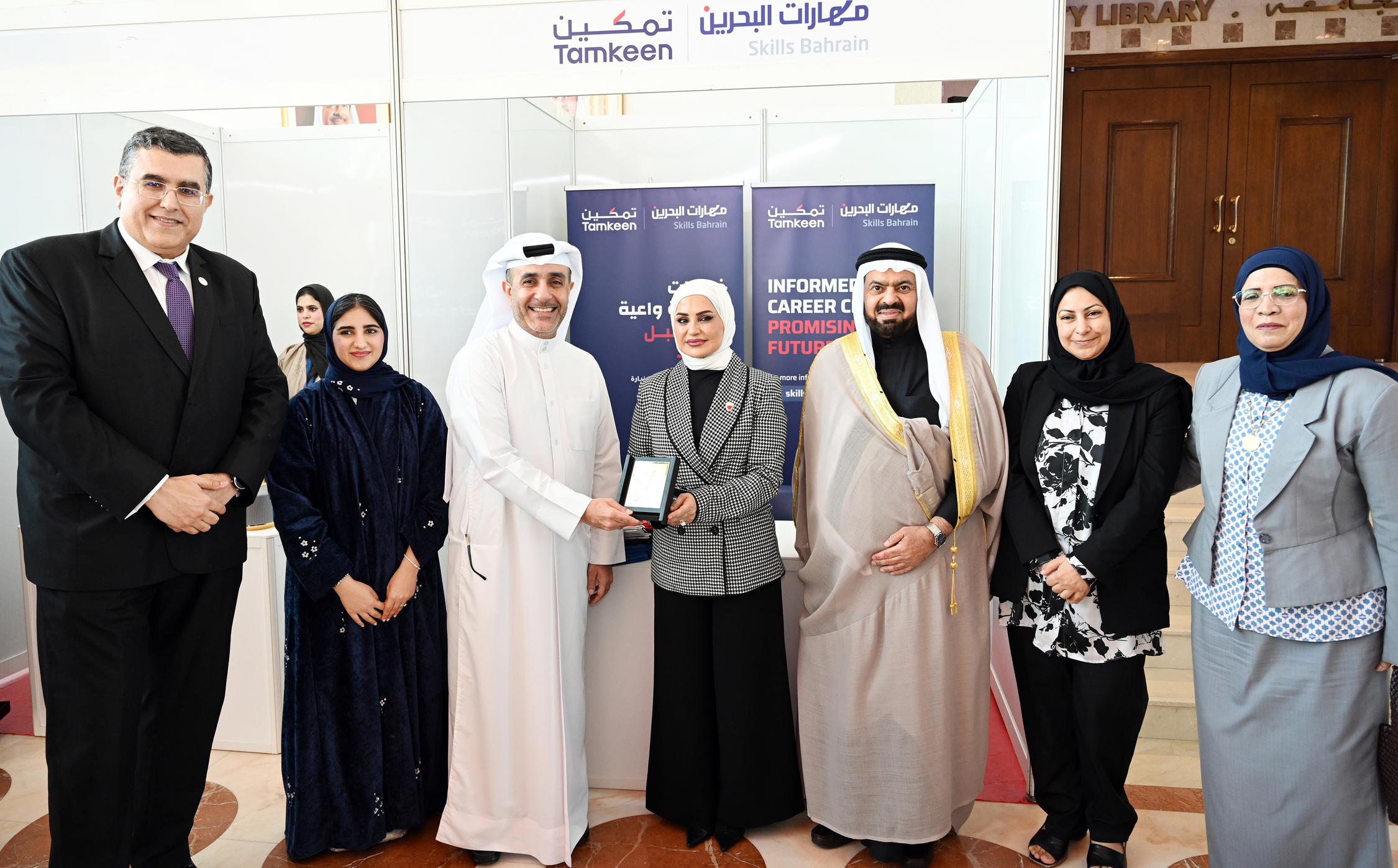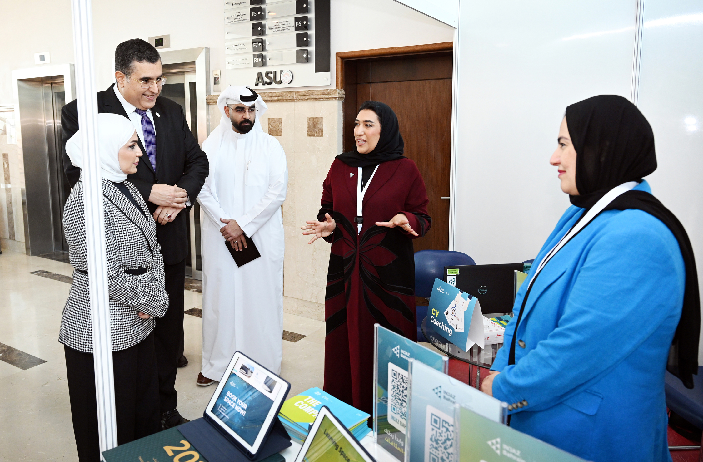 The career day event was attended by Her Excellency Dr Diana Abdulkarim Al Jahrami, Secretary-General of the Higher Education Council; His Excellency Professor Waheeb Al Khaja, the Chairman of the Board of Trustees; and Professor Hatem Masri, the President of the University, alongside a distinguished group of representatives from government and private sector institutions.